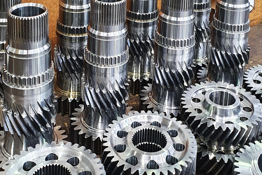 High-precision gears produced in-house ranging from small precision gears to large industrial gearsets, all made to DIN standards.